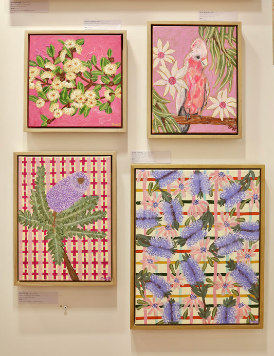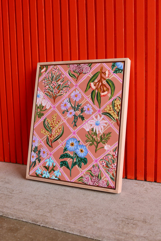 Original artworks by Amy Gibbs. Inspired by a love of colour, native flora and pattern, these pieces are truly one of a kind and add joy to any space