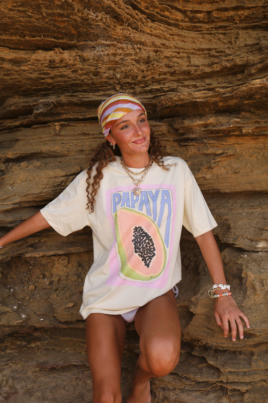 Elevate your wardrobe with this oversized, drop-shoulder t-shirt crafted from a heavyweight, 100% premium cotton. The boxy fit offers a relaxed and comfortable silhouette that’s perfect for everyday wear. Featuring a vibrant graphic print (on a soft butter yellow base) exclusively designed by Australian artist and designer Amy Gibbs, this tee is a wearable piece of art that adds a pop of colour and personality to any outfit