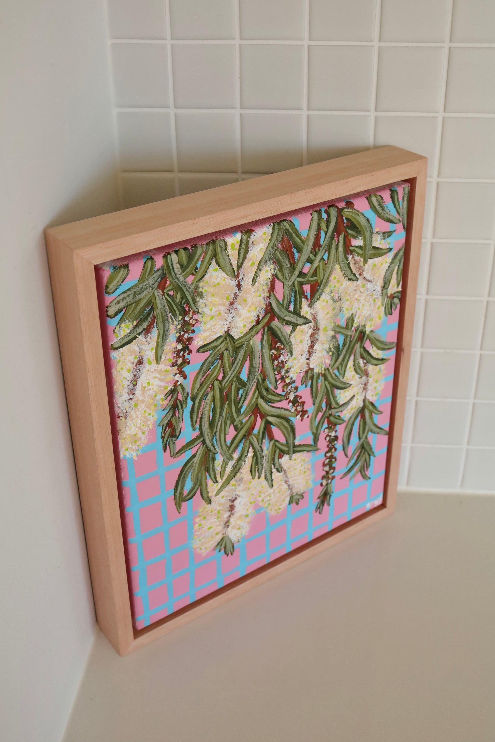 - Framed in raw Eucalyptus Grandis - ready to hang