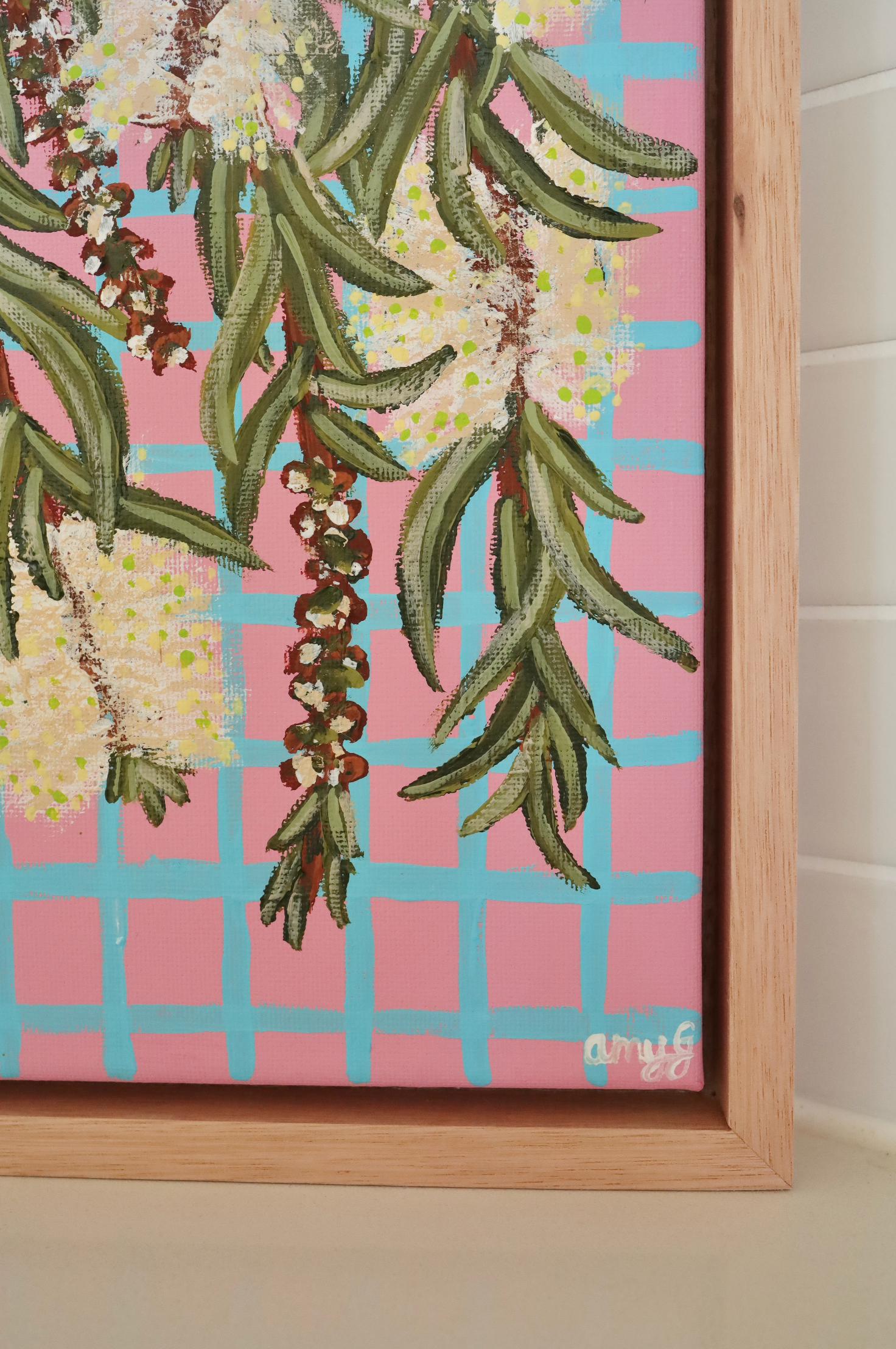 Worldwide shipping is available for this artwork Please email me directly on amy@amygibbsdesign.com.au to receive a quote.